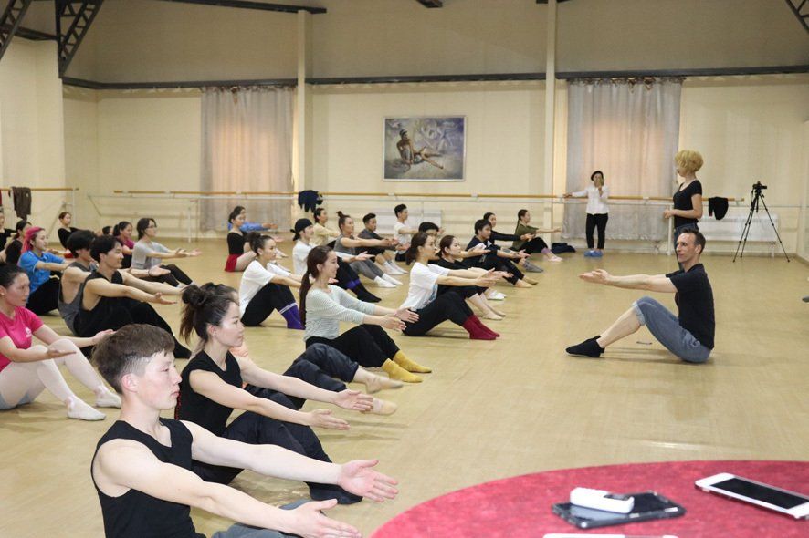 Zusätzlich führte der Choreograph eine Masterklasse durch, die den mongolischen Tänzer*innen zum Teil für sie unbekannte zeitgenössische tänzerische Herangehensweisen vorstellte.